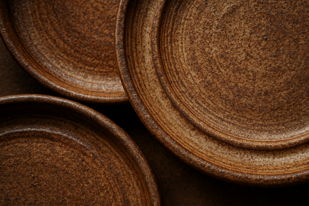 Conjunto de 5 travessas em cerâmica rústica com tons terrosos, produzidas artesanalmente para trazer o aconchego do campo para sua mesa. Cada peça tem características únicas que contam uma história.