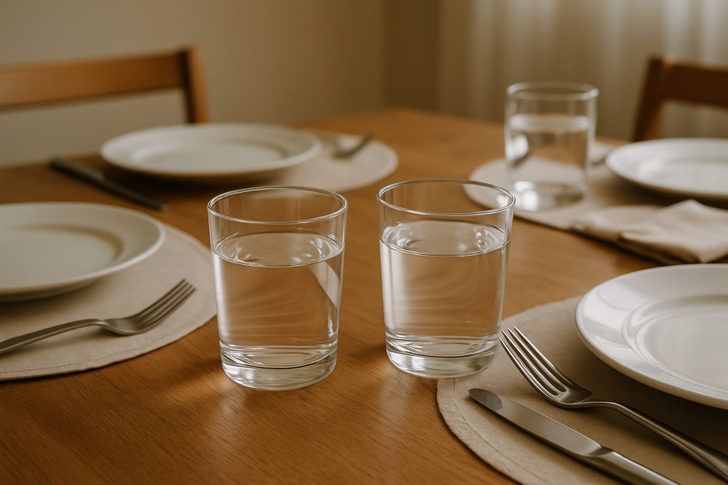 Conjunto com 6 copos de vidro transparente, ideais para água, sucos e bebidas do dia a dia. Design simples e elegante que valoriza qualquer mesa.