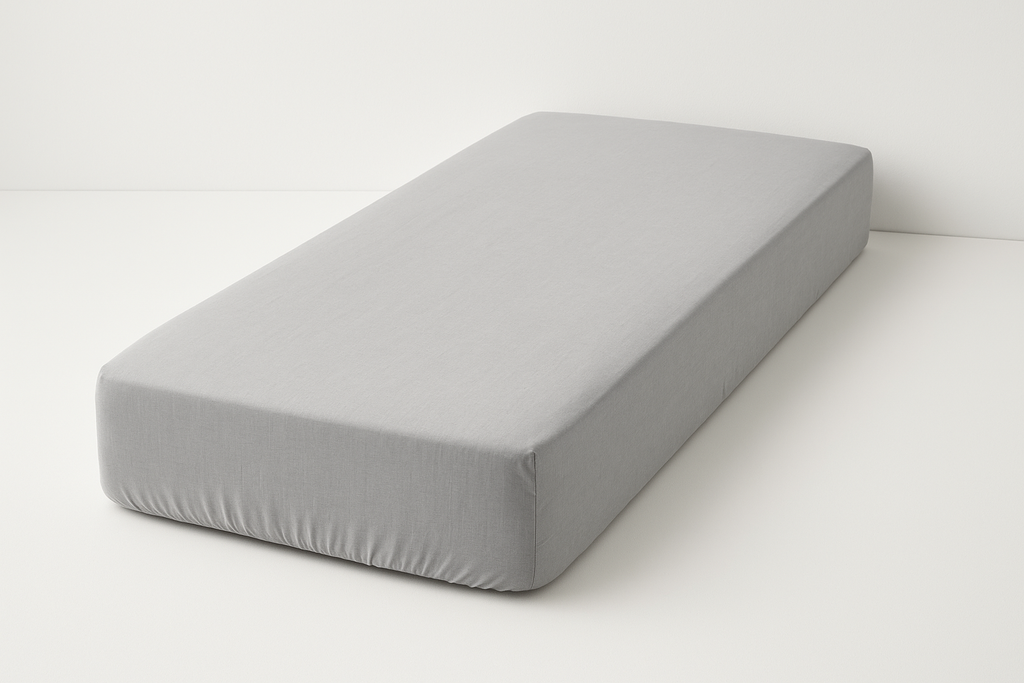 Lençol de elástico solteiro básico em cinza, ideal para quem busca praticidade e economia. Qualidade simples mas confiável para uso diário.
