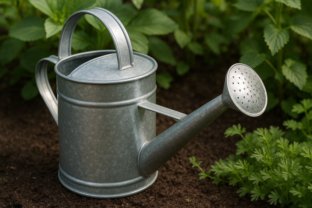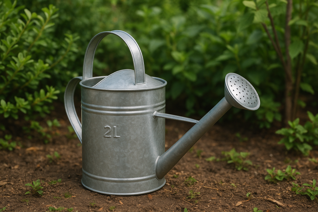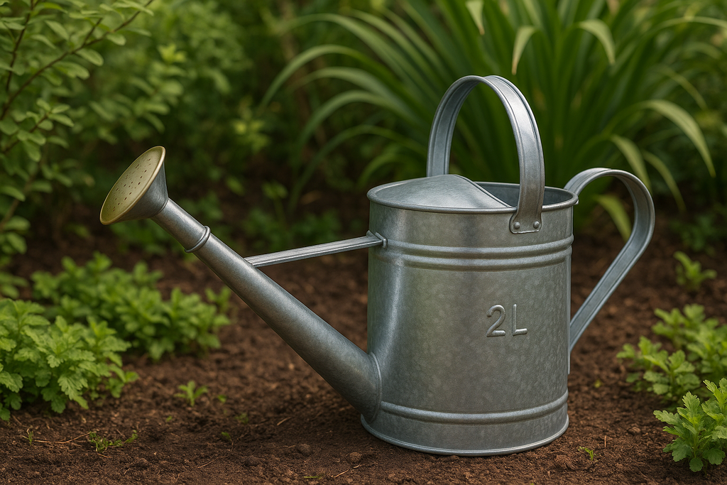 Regador em metal galvanizado com capacidade de 2 litros, bico longo e crivo removível. Design clássico e funcional para regar plantas com precisão e delicadeza.